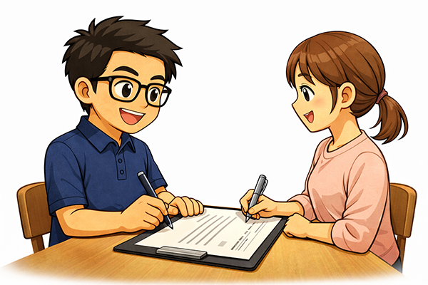 契約内容は事前にご確認いただき、ご納得いただいたうえで契約書の取り交わし、指導の開始となります。指導開始日は、ご相談のうえ決定します。